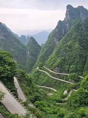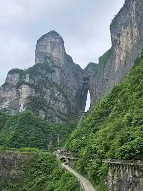 The journey up Tianmen Mountain begins with a ride on the Tianmen Mountain Cableway 🚡, the world's longest cable car, spanning over 7.5 kilometers! The ride takes about 30-40 minutes, offering breathtaking views. 🌄