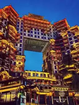 It's time to add some color to your nightlife! 72 Wonder Tower (七十二奇楼 or 72 Qilou) is Zhangjiajie's newest landmark, so spectacular it's been dubbed the "Gateway to Heaven." Lovers of bright lights, spectacular shows, and street food must visit!