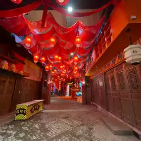 Yanhuo Pedestrian Street, with its small alleys lined with red lanterns and wooden architecture, is a vibrant street-style spot with a retro yet vibrant feel.