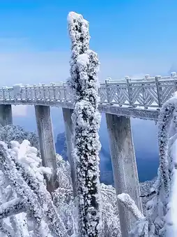 - ✔️Yunmeng Fairy Peak: The highest point of Tianmen Mountain, after snow you can overlook the entire "snow forest and sea of clouds." At sunrise, the rime glows golden, romantically heart-stirring.