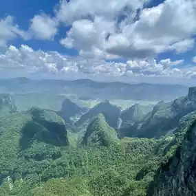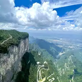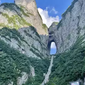 Nothing seemed to surprise us, but then we came to 天门山⛰… Unfortunately we didn’t get the route A , which includes 7.7 km cable way from downtown to the top of the mountain .