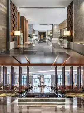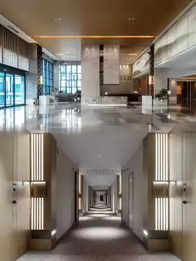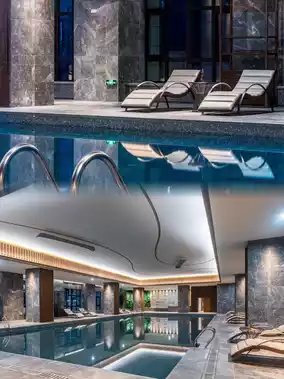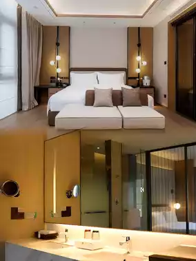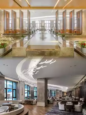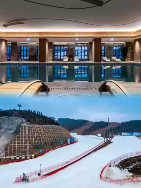 When you come to Chongli to ski, you should not just come to ski, you should also see the scenery of Chongli and watch the golden light cast on the snow trail when the sun sets. Look at the stars reflected on the snow track in the early morning. Because of its geographical location and the orientation of the ski slopes, the Galaxy Ski Resort welcomes the morning sun in the morning and is bathed in sunset glow in the evening. The snow track is bathed in sunlight and looks very beautiful. Yunzhen Jinling Cuiyunshan Hotel is a fifth or sixth-class hotel. Its overall color tone ranges from cold to warm. The wooden structure blends with the mountains and forests and is very appropriate for the ski resort theme. Whether you are skiing or on vacation, you can have a great vacation by choosing Galaxy Ski Resort.