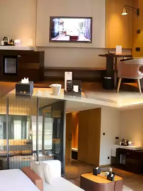 The king-size room is very spacious, and can accommodate your own skis without any pressure. It is also equipped with a bathtub, so it is quite comfortable to ski during the day and take a bath at night. There weren't many people when we checked in, so we were able to choose a room facing the ski resort. Xiaodu’s smart control is almost broken by my kids, thanks to Xiaodu’s good temper. The guest rooms are decorated in warm, comfortable wood tones and are equipped with a Nespresso capsule coffee machine and Xiaodu whole-house smart control system.