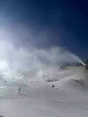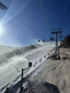 A day of sandstorms and strong winds, but with plenty of sunshine. They were making snow non-stop at the base of the mountain. I got up early and initially skied Yulong and Yinlong with an instructor, which was fine. Later, I went to Changlong by myself and was met with hard, bumpy snow, which was challenging for a beginner like me. There were large icy bumps in many places, and coming down felt like fighting against the wind. I left after coming down from Changlong due to my average condition.