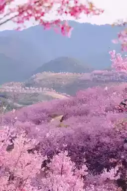 In Nanjing Tulou Scenic Area Ziyun Mountain, 1000 acres, more than 60,000 plants, more than 40 varieties of cherry blossoms have quietly bloomed, let you and your loved ones indulge in the charming flower sea, enjoy the romantic scene in front of you, as if walking into the pink castle, a glance can not see the end of the rows of cherry trees.