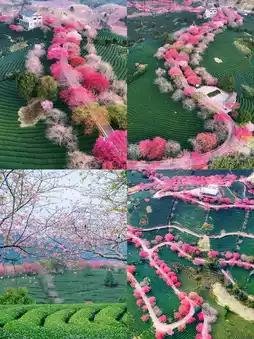 🌟Highlights: This is the core viewing area of Yongfu cherry blossoms. Hundreds of thousands of cherry blossoms are planted in the tea garden. Pink, red, and white cherry blossoms are intertwined with green tea trees, forming a beautiful picture.