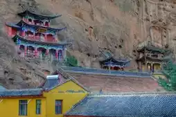 #thousandbuddhatemple was constructed during the Yuan dynasty in 1271-1368. This temple, also carved out of the cliff face and pockmarked with thousands of tiny holes like a Swiss cheese mountain #zhangye #silkroad