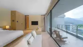 The moment you open the door, the panoramic floor-to-ceiling windows frame the entire mountain and wild into your eyes👀
