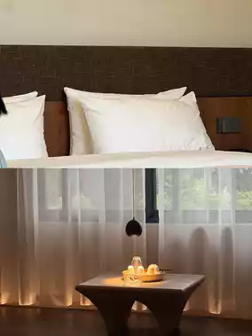 | Zen hotel next to a temple. The rooms are surprisingly spacious, and my favorite part is the tatami partition tea table. In the tea country of Fujian, sitting down with an old friend for a chat and a cup of tea is a real pleasure.