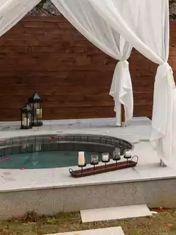 Who doesn't love soaking in a hot spring in this weather!! There is a hot spring pool in the yard, and all 5 rooms have private hot spring pools~