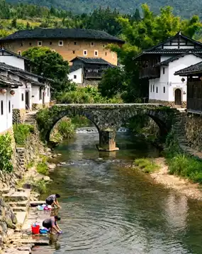 - Highlights: Known as the "Zhouzhuang of Minnan," with small bridges, flowing water, and houses. Tulou built along the creek. You can also taste Tulou black tea and enjoy a leisurely rural time.