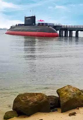 The surface ships and submarine decommissioned military equipment display area is about 2 kilometers away from the expo park. The display area features a Kilo-class conventional-power submarine and a missile destroyer, where tickets can be purchased to board and tour the vessels, and one can also admire them from the surrounding beach and take photographs as a memento.