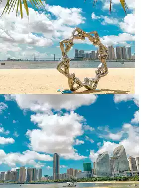 - China's longest beach (28km) with fine sand and clear water, great for swimming and beach sports.