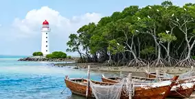A "microcosm" of Zhanjiang’s fishing culture, located next to Zhanjiang Port, centered around fishing boats, lighthouses, and mangroves. Strolling through the park, you’ll see replica fishing boat sculptures and playful ocean-themed facilities. In the distance, the busy fishing port bustles with activity. Enjoying the sea breeze while watching boats come and go is full of maritime cultural life.