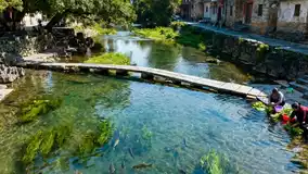 5. 【Streamside Homes】Women wash vegetables by the stream, wooden basins shimmering with water light, full of everyday life warmth
