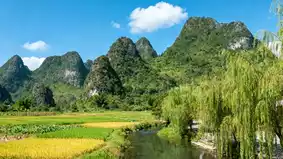 3. 【Karst Reflections】The karst hills beside the ancient town reflect in the clear pond, framing a natural painting of mountains and water