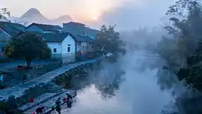 1. 【Ancient Bridge Morning Mist】The bluestone ancient bridge lies across the stream, morning mist wraps the gray tiles, even the flowing water slows down by half a beat