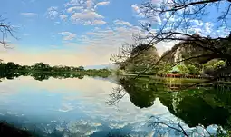 The surroundings of the Seven Star Crags are very convenient. You can choose to take a taxi, drive or cycle to easily reach your destination. At night, there is a very comfortable place on the side of Star Lake called Zijing West. When night falls, this place becomes bustling, and many people enjoy local snacks and drinks here. Moreover, you can taste delicious food while admiring the night view of Star Lake, which is really great!