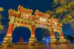 Seven Star Crags is located about 2 kilometers north of Zhaoqing city area, consisting of five lakes, six hillocks, seven crags, and eight caves. The scenic area has four gates in the east, west, south, and north, with a Fairy Lake entrance in the northeast. The east gate is closer to Fairy Lake, and the south gate is closer to the Seven Star Crags Arch Square, but both of these entrances are relatively far from the core scenic area, so it is recommended to enter from the west gate or the north gate along the Yingbin Boulevard.