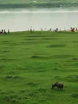 2⃣️Grassland by the river: Walking along the dam, you can see a grassland by the river. When you see the stairs, walk down and stroll on the large grassland. Enjoy the beautiful scenery of buffaloes 🐃 eating grass and water egrets 🕊️ flying together, and enjoy the rare outdoor oxygen bar~