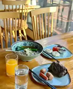 Congee, noodles, wonton, eggs, buns, sausages, pastries, orange juice, yogurt... There's a wide variety of food, so you're bound to find something you like