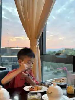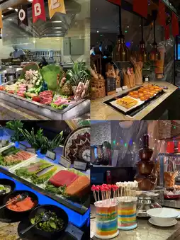 We booked a buffet on the third floor. The restaurant was all floor-to-ceiling glass, and it was so atmospheric to eat dinner while watching the sunset 🌄~ The buffet had a lot of seafood 🦀️🦐🍣🍤🐙🦞🐚🦪, cooked food 🥩, pastries 🍰, fruit 🍉, and more!! My little brother didn't want to leave 😭😭