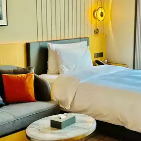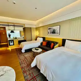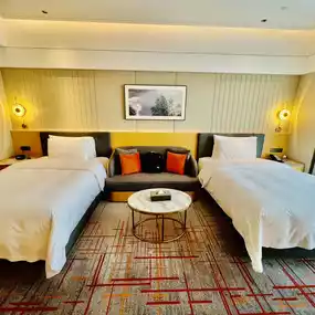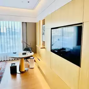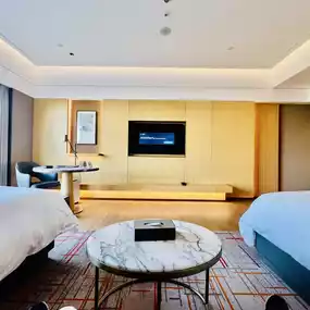 Walking into the hotel lobby, you are greeted by two local landmark decorations. The middle hall is equipped with the largest curved LED screen in Asia, scrolling and broadcasting Duanzhou's scenic spots. Walking in the hotel, there is a luxurious and understated feeling everywhere.