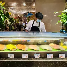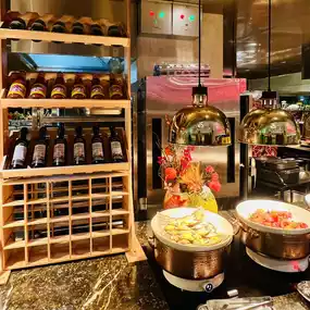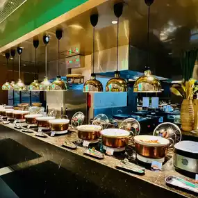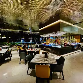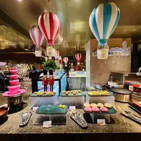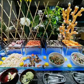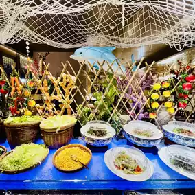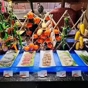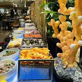 The buffet is located in Xuan Western Restaurant on the first floor of the hotel. The decoration is very grand and the environment is very comfortable. It is expected that you can see the outdoor lake and mountain scenery very well during the day. The scenery is beautiful. The space is spacious, the tables are spaced far apart, and the seats are very comfortable.