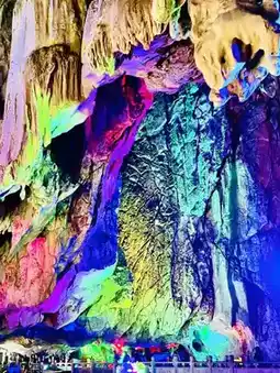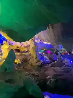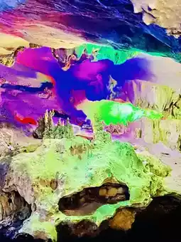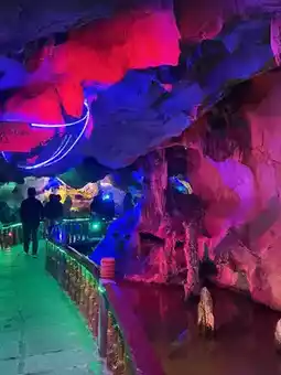 This naturally formed cave features strange rocks, such as the "Dinghai Shenzhen" and the "Havoc in Heaven." Combined with the colorful lights, it truly feels like you're transported to a scene from Journey to the West. Once you step out of the cave, every photo you take is a masterpiece.