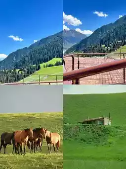 The world's largest sweat horse base 🐎! Must-see the famous scene of "Sky Horse Bathing River" - horses stepping on the Turks River, splashes and rainbows dance together 🌈 (two performances daily at 11:00/17:00)! You can also ride a sweaty BMW in the grassland (800 yuan/hour) and become the protagonist of "Kyushu Jingu" in seconds 🏇!