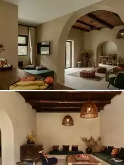 Xipo has three courtyards: Beiyang, Niubei, and Xilu. They are scattered throughout the village, offering views of the mountains in all four seasons. The design is inspired by the farmland landscape of southern Shaanxi and features traditional southern Shaanxi architecture, including tiled roofs, brick carvings, and yellow rammed earth walls.