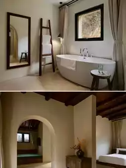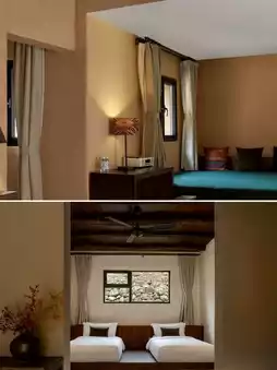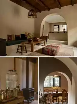 In this 2,000㎡ valley sanctuary, guest rooms are scattered across three courtyards. With a "restore as old" philosophy, the designer preserved the distinctive tiled roofs and ochre rammed-earth walls of southern Shaanxi folk houses, each building adorned with hand-carved brick patterns by local artisans. Push open the wooden doors to find a relaxed vibe where polished concrete meets textured rammed-earth walls. Mid-century furniture and vintage treasures from overseas whisper tales of bygone days under dappled light from floor-to-ceiling windows.