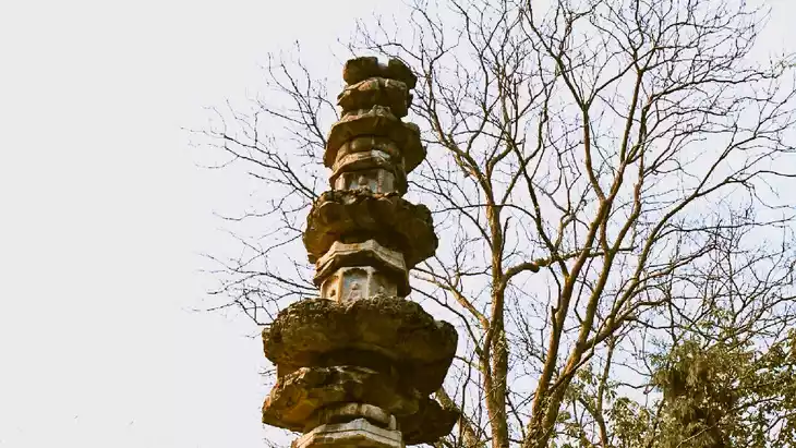The foundation of Lingxiao Pagoda is rammed with plain yellow earth, which is a construction technique from the Tang Dynasty. In the center of the fourth floor of the Lingxiao Pagoda, there stands a huge bundled column made of nine round logs tied together and extending straight to the top of the tower. It is called the core column of the tower. The core column style was the main style of building towers before the Tang Dynasty.