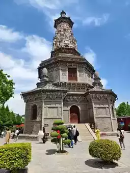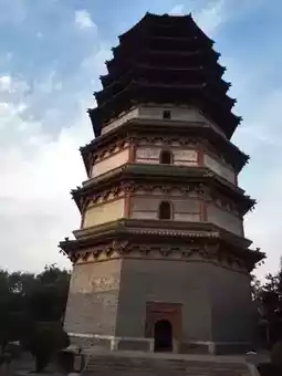 Lingxiao Pagoda is located in the former Tianning Temple on the north side of Dazhong Street in the old city of Zhengding County, Hebei Province. It has nine floors and is 42 meters high. It was built in the first year of Emperor Suzong of Tang Dynasty (756). It was originally named "Huiguang Pagoda". Because the tower body is all made of wood, the locals also call it "Wooden Pagoda". It is a national key cultural relic protection unit and one of the few existing wooden pagodas. The tower is octagonal in shape and is a pavilion-style tower with a brick bottom and wood top. The first to fourth floors are brick structures, and all floors above the fifth floor are wooden structures. There are only two existing half-timbered ancient towers in China, located in Zhengding, Hebei and Zhangye, Gansu, and the Lingxiao Tower was built much earlier.