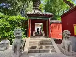 The Sumi Pagoda of Kaiyuan Temple, also known as the Brick Pagoda or Square Pagoda, is located on Changsheng Street within Zhengding City. It was built in the second year of Xinghe in the Eastern Wei Dynasty (AD 540). The pagoda has 9 levels and is 53 meters high. The pagoda body has a square plan and is hollow; the walls are built with blue bricks, and the interior is reinforced with wood, making it more solid. Each corner of the bottom level has pseudo-tympanum stone carvings in the style of the Tang Dynasty. Each level has a door on the front, with the bottom level having a stone ring door. The first level has a lintel carved with two dragons playing with a pearl, and each corner has wind chimes hanging. The pagoda body is basically intact, with a simple shape and distinct Tang pagoda characteristics. To the east of the pagoda is an ancient bell tower with a huge copper bell inside. When the bell is struck, it can be heard for dozens of miles around. This pagoda is one of the simplest and most straightforward high-level ancient pagodas in China in terms of structure and exterior design.