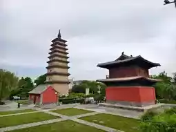 Lingxiao Pagoda is located on Dazhong Street within Zhengding County, situated in the Tianning Temple, also known as the Wooden Pagoda. It was initially built in the early years of the Tang Xiantong period (AD 860). It was repaired during the Song, Ming, and Qing dynasties. The pagoda has a mixed structure of brick and wood, with nine levels and a height of 60 meters, making it the tallest ancient building in Zhengding City. The height of each level decreases from top to bottom. There are stairs inside the pagoda to climb to the 1st, 2nd, 3rd, and 4th floors. Above these floors, there is a central pillar connected to the pagoda body with radial corner beams. From the outside, the bottom three levels of the pagoda body have brick bucket arches. Above the 4th level, the bucket arches and flying eaves are all wooden structures, with wind bells hanging at each corner and doors on all four sides. The top originally had an iron cast jujube kernel-shaped pagoda spire. As the pagoda rises, the height of each level decreases, and the segmentation of each level increases, giving the appearance a sense of stability and elegance. This type of high-level ancient pagoda structure, with a brick base, wooden upper levels, and a central pillar penetrating five levels, is extremely rare in the country. However, the pagoda spire and top were shaken off during the 1966 Xingtai earthquake, and the ancient pagoda body was also damaged. The current Wooden Pagoda is a reconstruction, with its height reduced to 40 meters, and its structure is not entirely the same as the original pagoda, but it is still a magnificent tall pagoda.