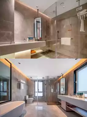 We stayed in a riverside king room, although it was only 40 square meters, the space was spacious and comfortable for two people. The huge panoramic floor-to-ceiling windows allow you to enjoy the beautiful view of the lakeside manor from the bed, which is amazing! The room facilities are complete, with intelligent guest control system, fresh air system, mini bar, coffee, and high-quality toiletries. The next day, there was also a breakfast delivery service, with a wide variety of nutritious options.