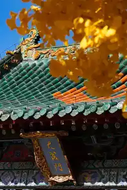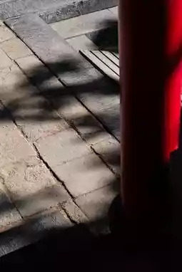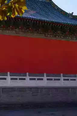 I really like the feeling of red walls, green tiles and golden ginkgo trees together.