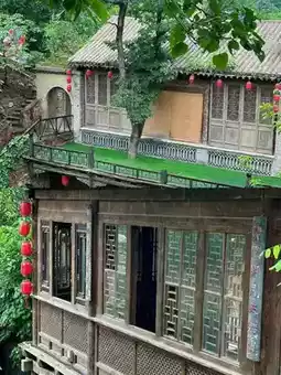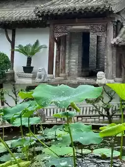 The Shanxi-style Siheyuan courtyard was relocated as a whole from Boai, Jiaozuo, with an all-wood structure, and the courtyard features exquisite wood carvings of the Eight Immortals crossing the sea🗽