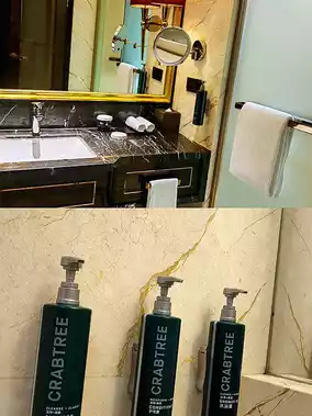 The room design style is a bit old school, but it is evident that the materials used for the decoration at the time were of a high standard, and the rooms are well-maintained. The lighting design is quite warm, and the bedding is very comfortable.
