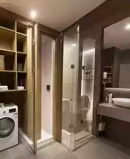 There's a refrigerator, washing machine, and induction cooktop, all from Siemens, which is very thoughtful.