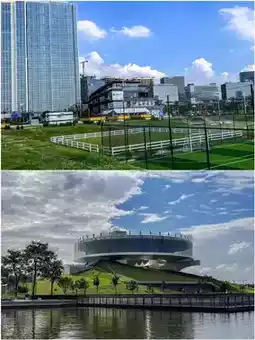 The 280-meter-tall "Corn Building" at Millennium Royal Plaza will instantly wow you! 🌽 Surrounded by a circular water system and modern architecture, it's like stepping into a future city by day, and when the lights come on at night, it's pure cyberpunk vibes!