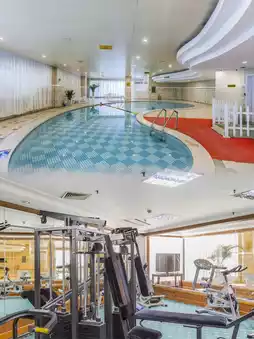 2⃣ The hotel features a gym and swimming pool with modern fitness equipment, perfect for relaxation and workouts.