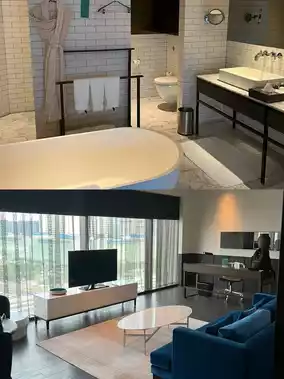 Room Highlight: Floor-to-ceiling city-view windows, "stunning nightscapes."