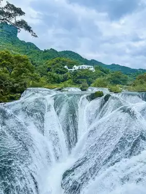 The waterfall's reflection sways the green mountains, and the sounds of Guizhou flow into the painting—Huangguoshu Waterfall