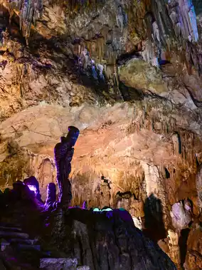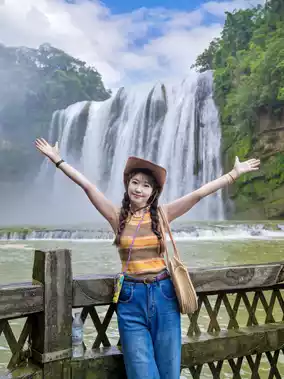 Take the scenic sightseeing bus to Huangguoshu Waterfall, hike down the mountain (20 minutes), you will pass 3 viewing platforms, view Huangguoshu Waterfall from high to low, there are signs to Shuiliandong (recommended to bring a raincoat) go directly in, this section is all the way down the mountain, finally to the low end of Huangguoshu Waterfall, close-up of the big waterfall, then take a one-way escalator up.
