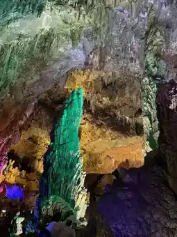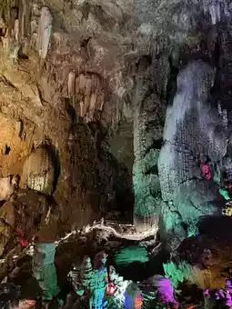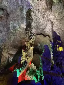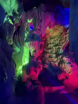 The lights in the cave are colorful,