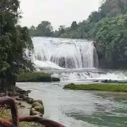 The Grand Waterfall is majestic, especially when the water flow is abundant. The water cascades down, crashing onto the rocks below, creating layers of white waves accompanied by a roaring sound, making it a masterpiece of nature.