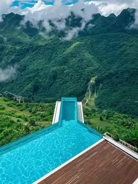 Fengxi Cave Homestay will drop your jaw! Pool suspended 500m above the lake⚡️ Kids cannonball shouting: "I'm swimming in clouds!" Nighttime cave hot springs🕳️ watching fireflies weave star nets overhead~