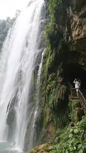 Huangguoshu is not just about viewing the waterfall but “walking into it.” We bought escalator tickets (50 RMB round trip) to save energy and time. The highlights:
